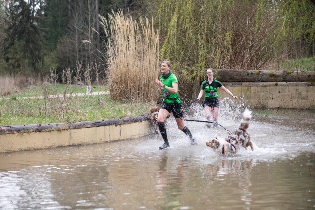 - Team „Jung und fit – nix mit Strick“: (Nicole + Merle sowie Trixi + Bailee) – 5 km, 20 Hindernisse