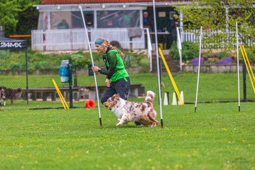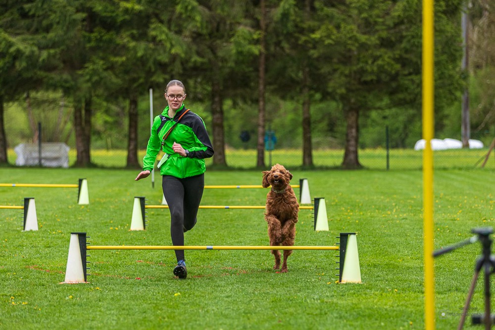 Ebenfalls wurde das Stehkommando schnell und zuverlässig ausgeführt, lediglich ein leichtes schräges Vorsitzen wurde beanstandet, aber auch diese Übung war im Sehr gut. Dann kam die Platzübung, und hier hat sich Bailee an ihrem Bruder Bruno orientiert und ein sehr schönes Sitz gezeigt. Diese Vorstellung fand beim Richter leider keine Zustimmung und wurde mit mangelhaft bewertet. Ihre Unterordnung ergab dann 48 Punkte. In allen drei Laufdisziplinen blieb das Team fehlerfrei und war auch schnell unterwegs, was sich dann auch in 219 Laufpunkten widerspiegelt.