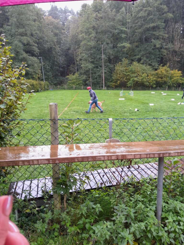 Martina Mang ließ sich von dem schlechten Wetter nicht runterziehen und startete hoch motiviert und konzentriert in Klasse 2 mit ihrer Hündin Ida.