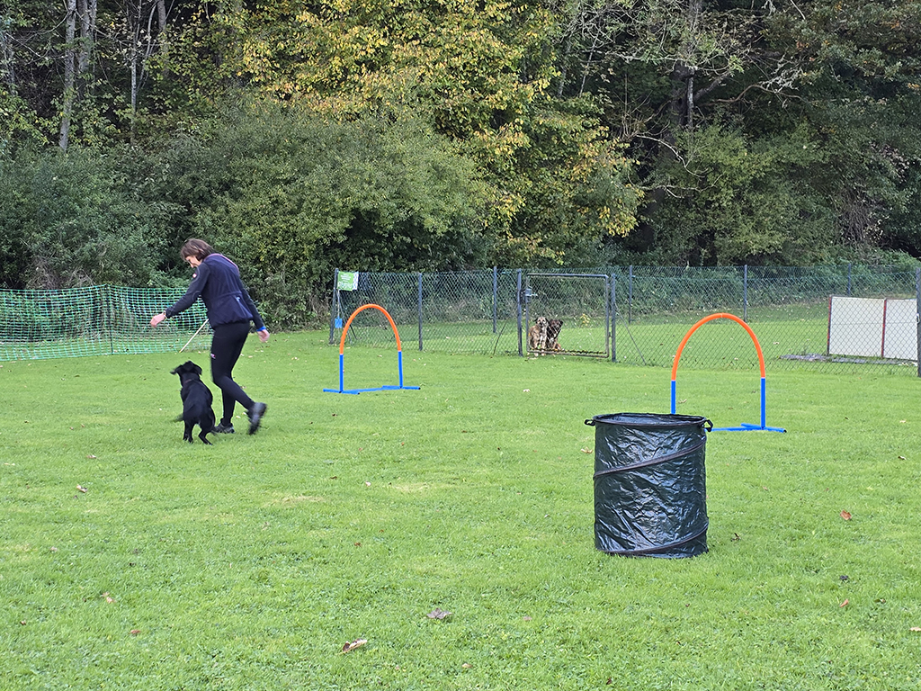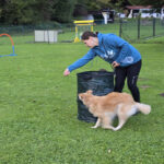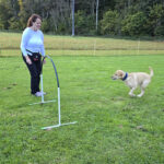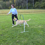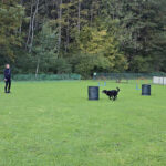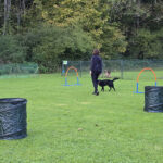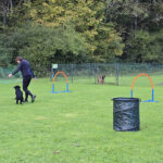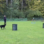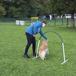 Bei Hoopers wird der Hund auf Distanz durch einen wechselnden Parcours aus Hoops, Tonnen, Gates und Tunnel geführt. Ziel ist es, ruhig und präzise zusammenzuarbeiten, es erfordert Konzentration und Feingefühl auf beiden Seiten.