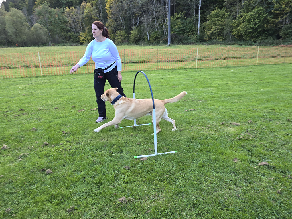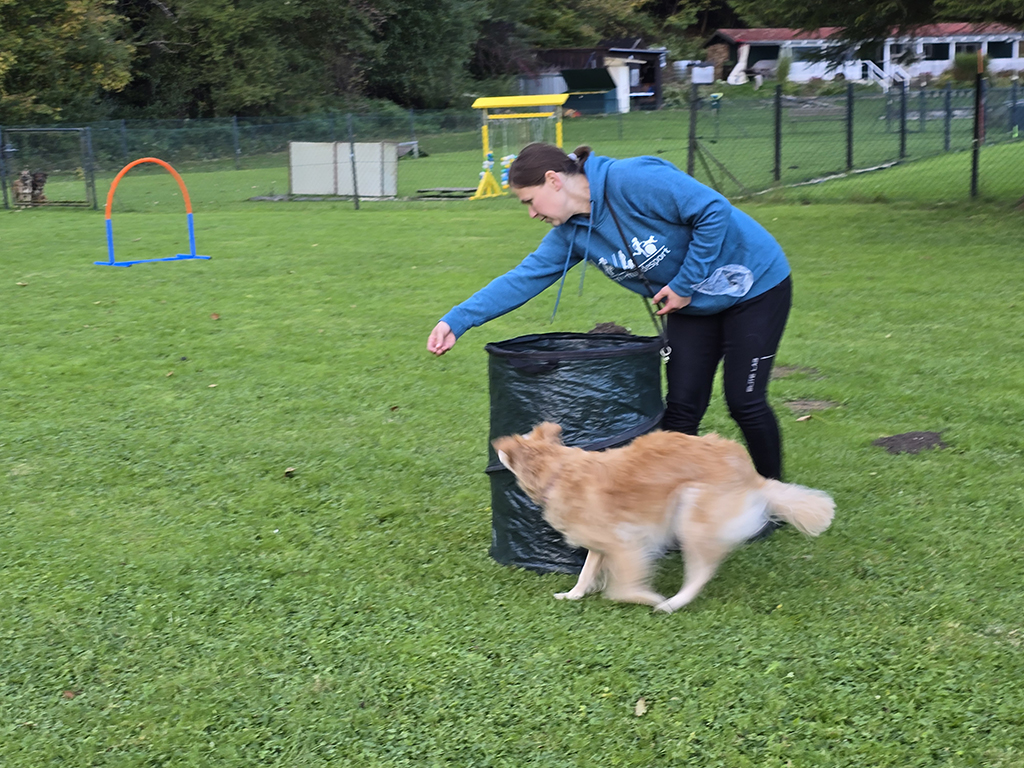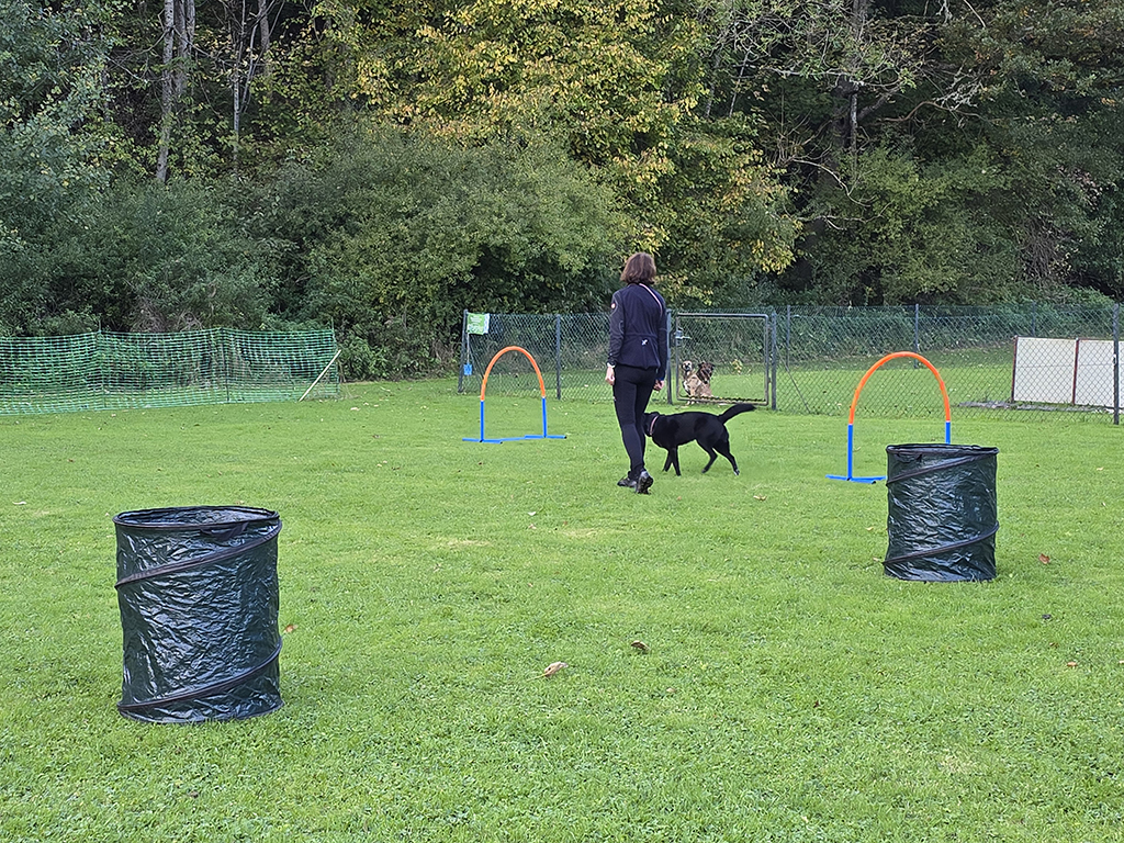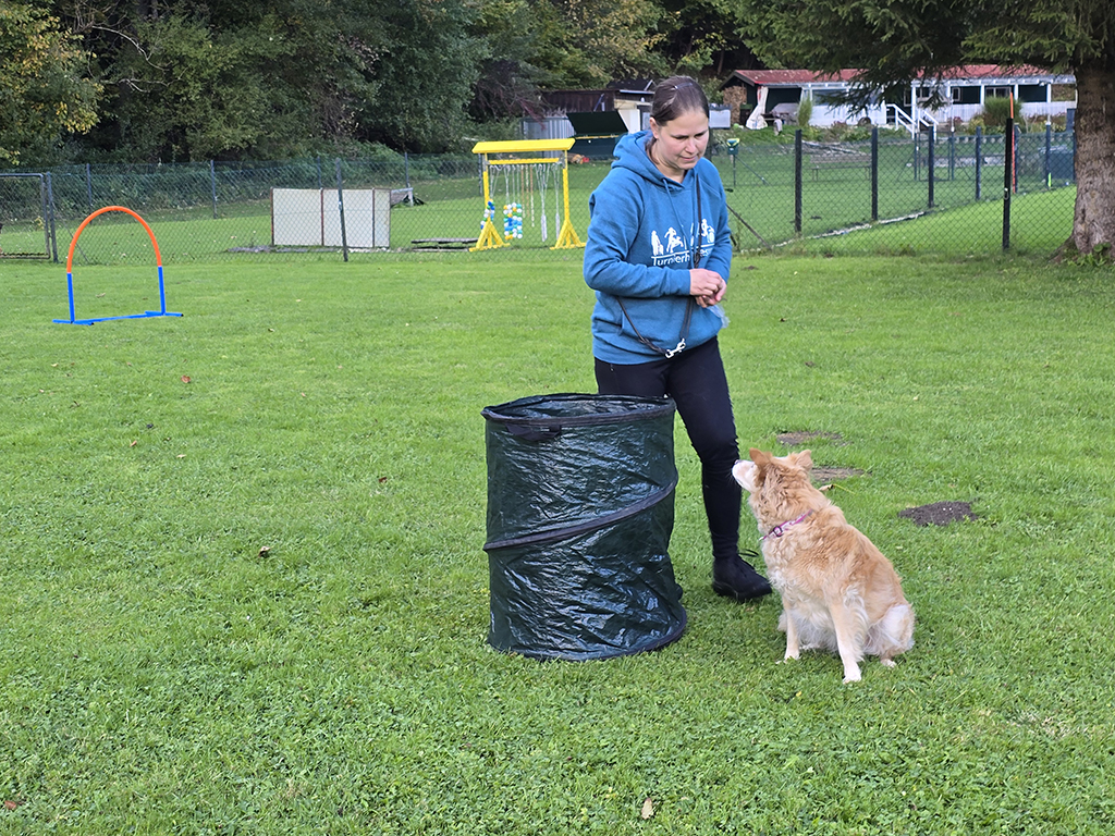 Bei Hoopers wird der Hund auf Distanz durch einen wechselnden Parcours aus Hoops, Tonnen, Gates und Tunnel geführt. Ziel ist es, ruhig und präzise zusammenzuarbeiten, es erfordert Konzentration und Feingefühl auf beiden Seiten.