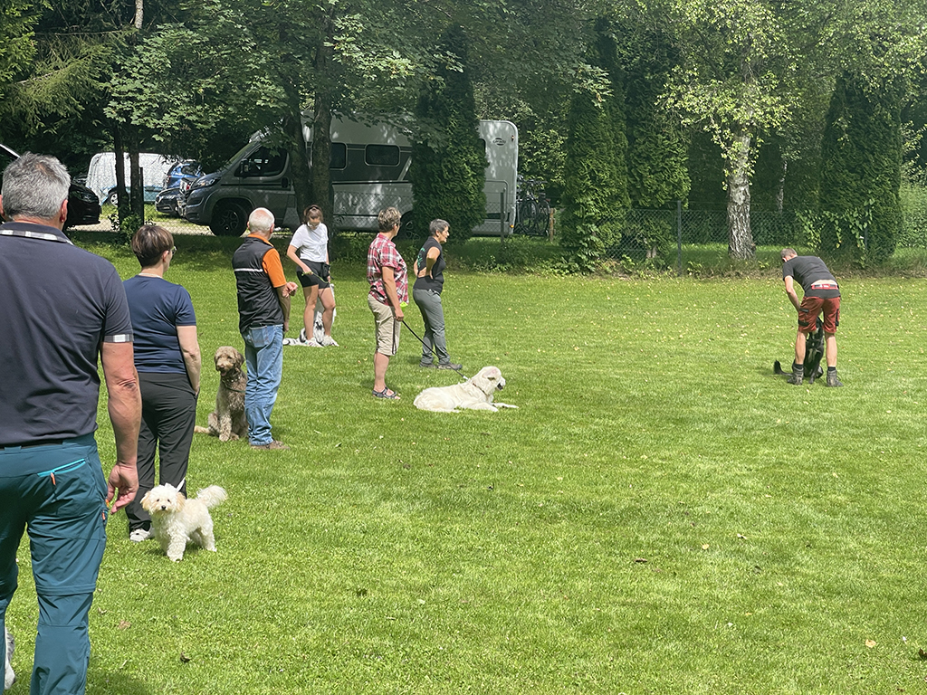- Alltagstraining, z.B. Begegnung mit anderen Menschen und Hunden, Verhalten in Menschenansammlungen und im Straßenverkehr
