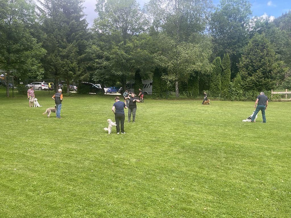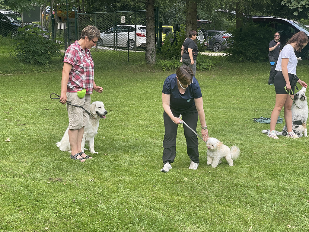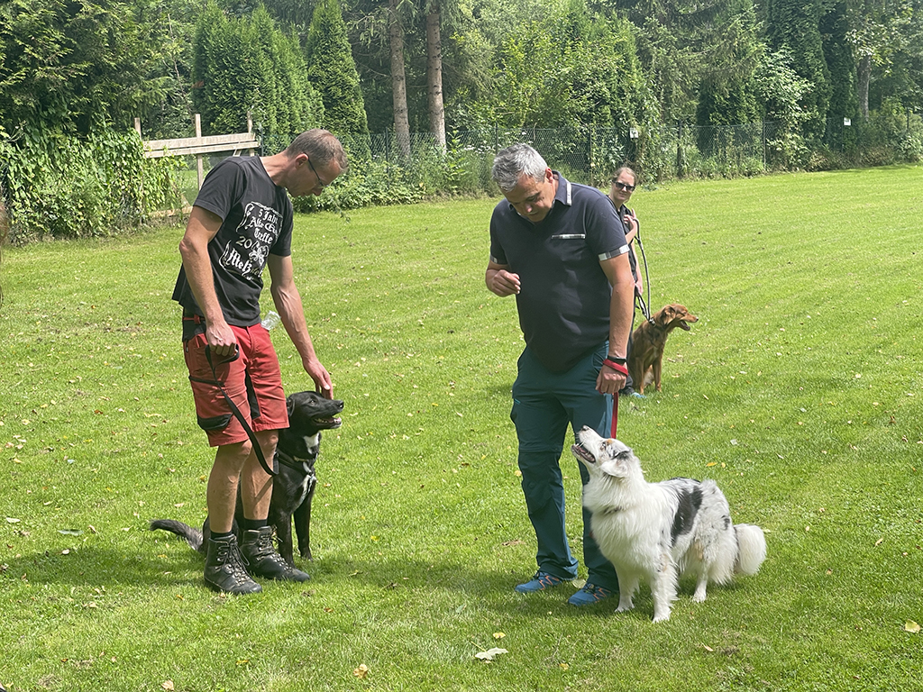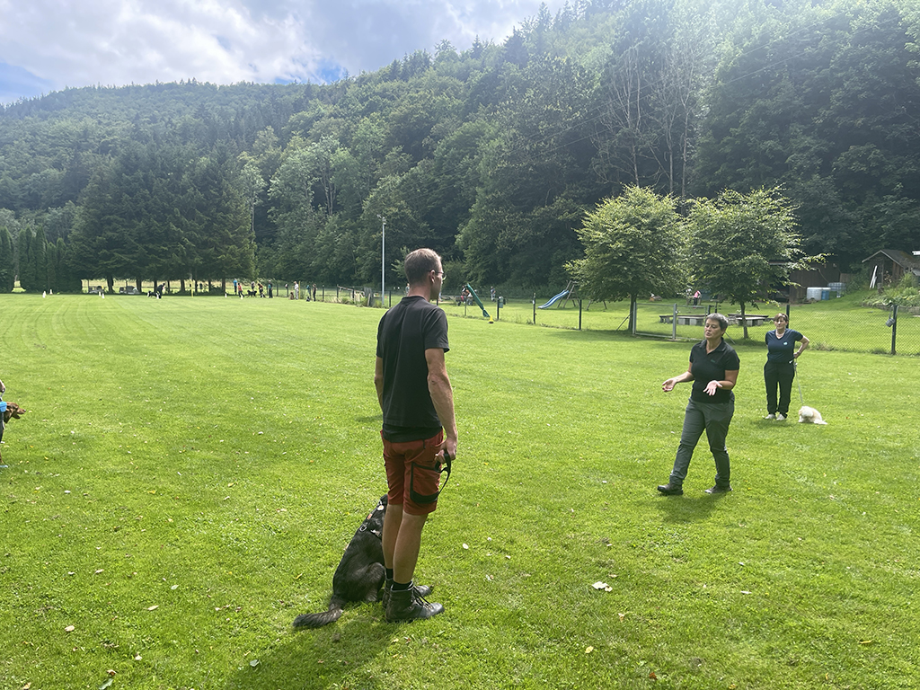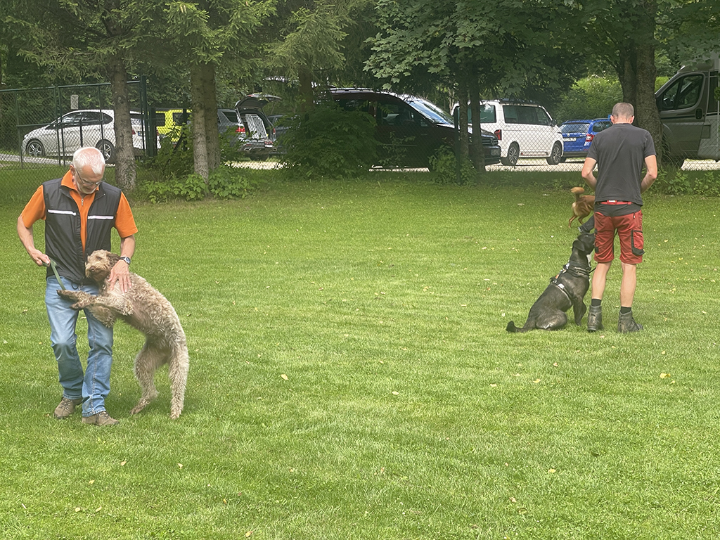 - Alltagstraining, z.B. Begegnung mit anderen Menschen und Hunden, Verhalten in Menschenansammlungen und im Straßenverkehr