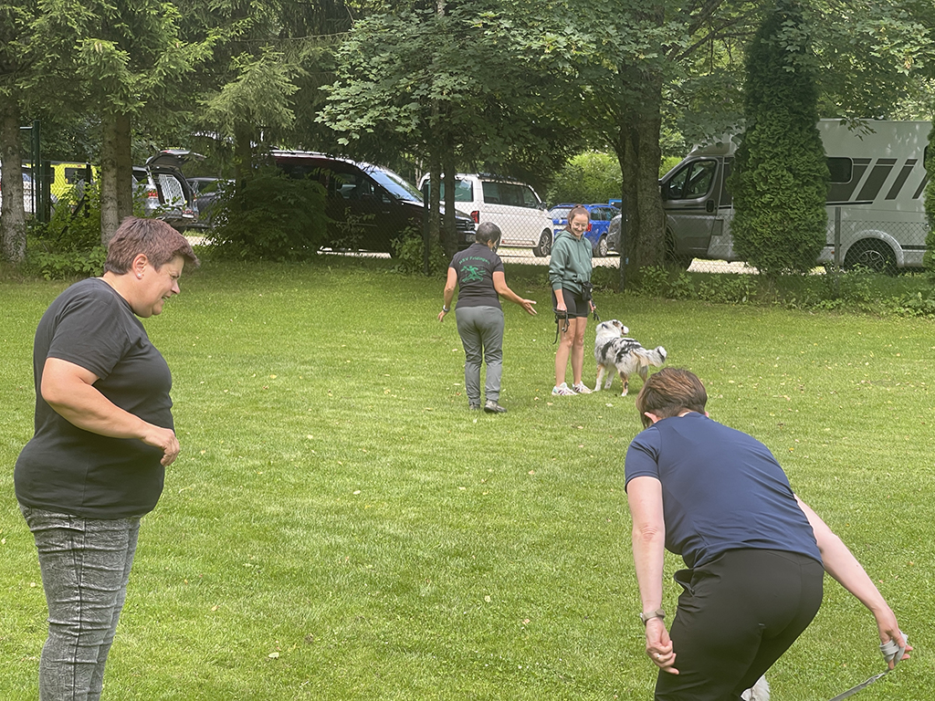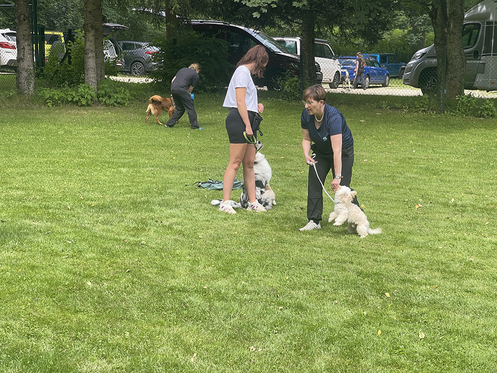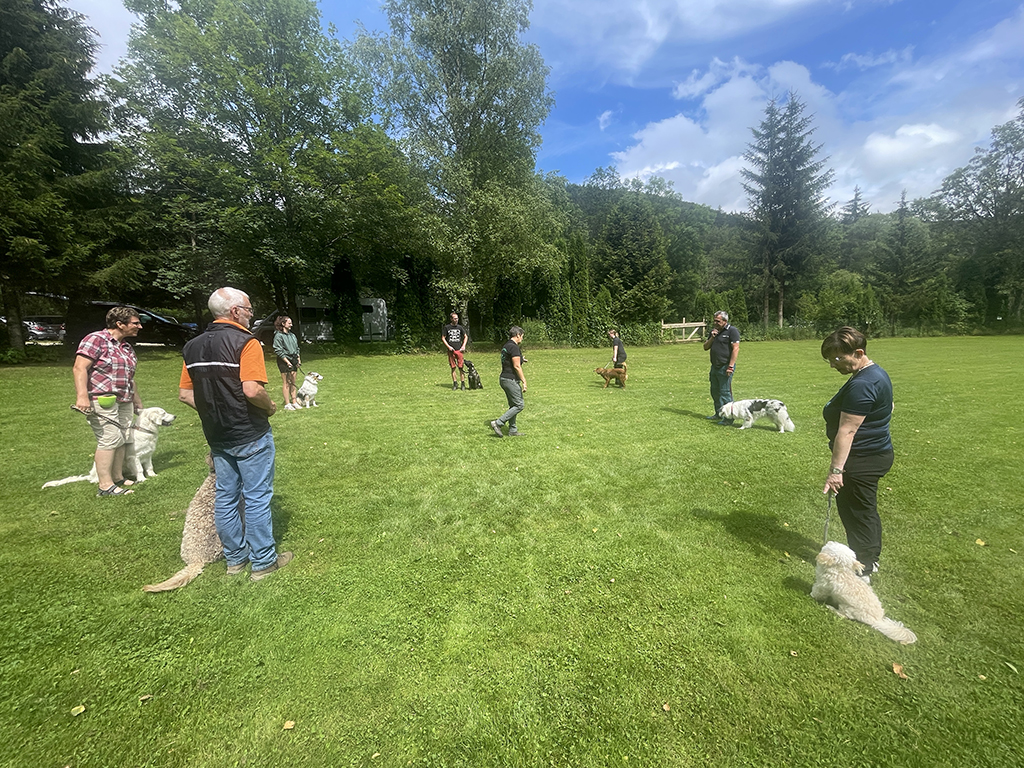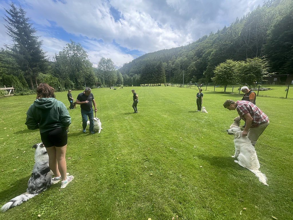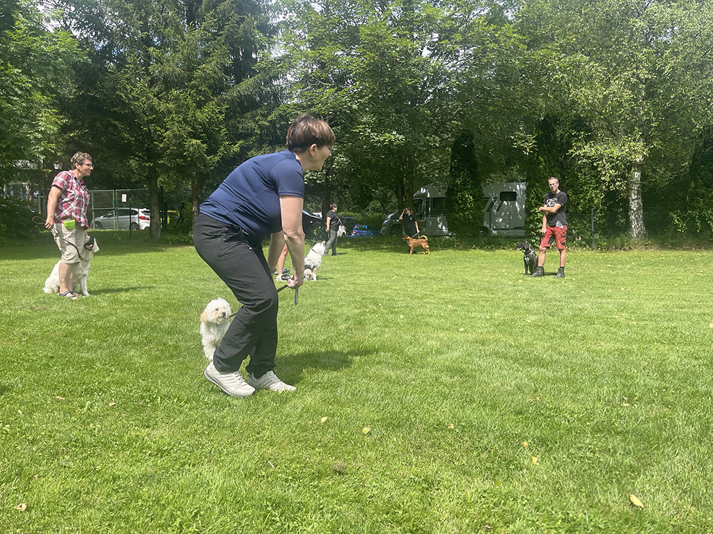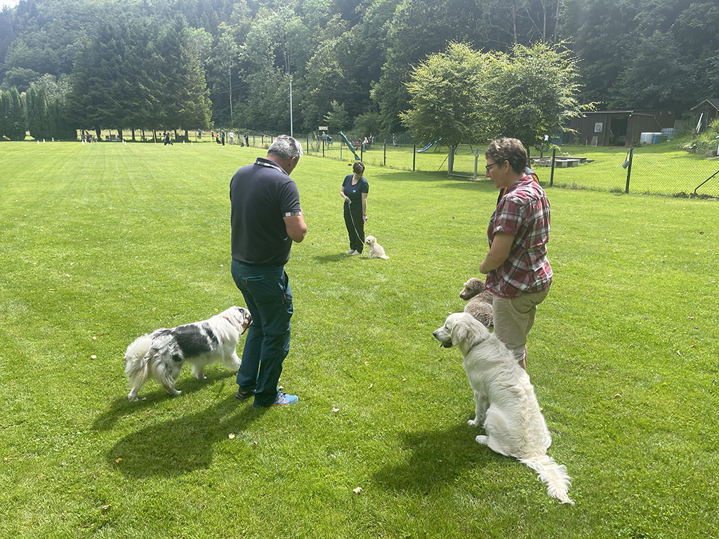 - Alltagstraining, z.B. Begegnung mit anderen Menschen und Hunden, Verhalten in Menschenansammlungen und im Straßenverkehr